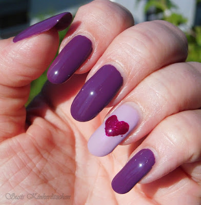 Lilas benötigte zwei Schichten, Figue nur eine. Lila in hell und dunkel - damit zeige ich, dass ich von hell bis dunkel alle Lila-Töne mag. Und damit bei meinem #Mood #LilaLiebe auch das Symbol der Liebe nicht fehlt, versuchte ich mit Pivoine Nacree auf Lilas ein Herz aufzutragen, was nicht gerade leicht war... ich hoffe, es ist zu erkennen. :)